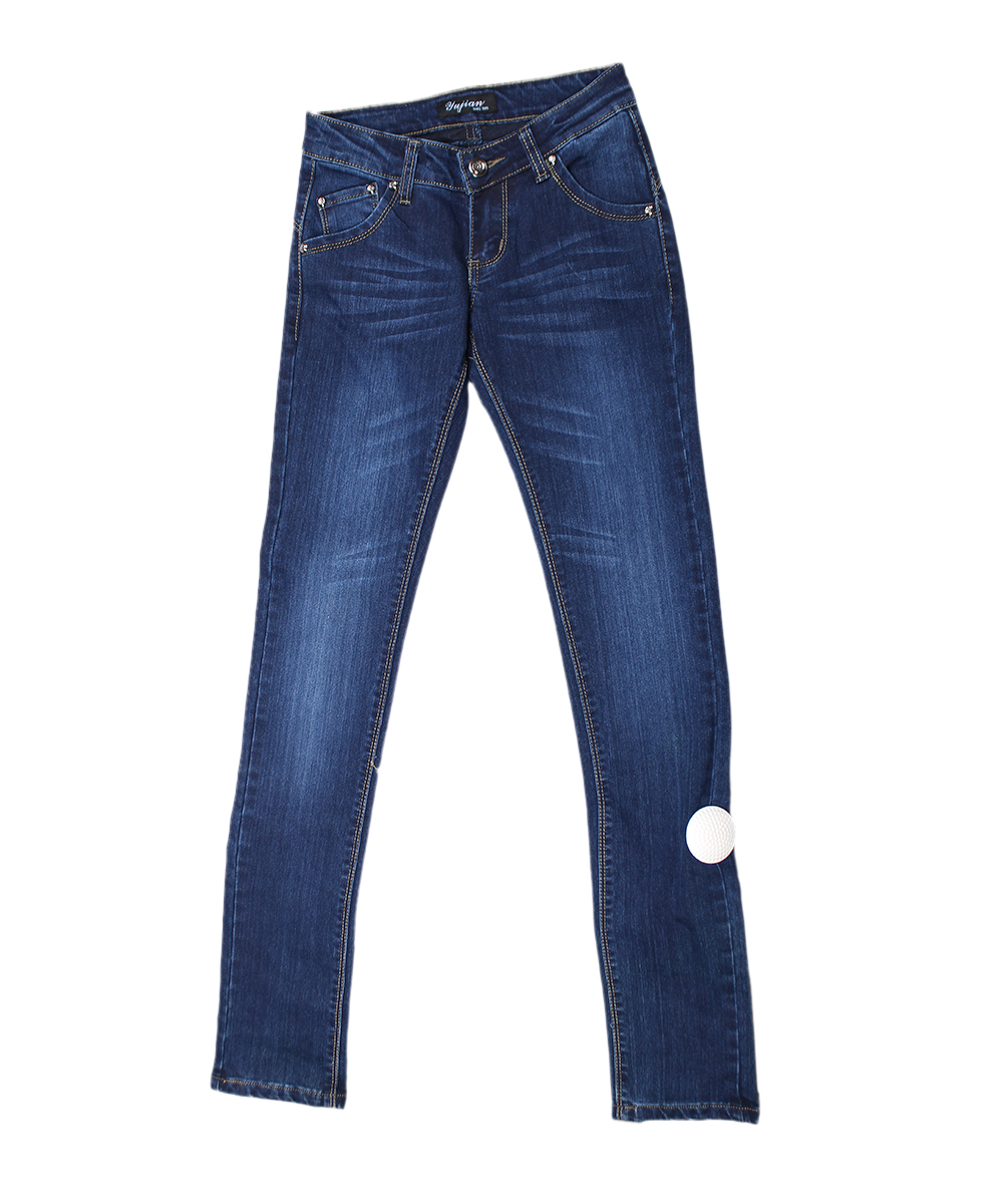 Джинсы женские темно-синие верх с эффектом потертостей оптом