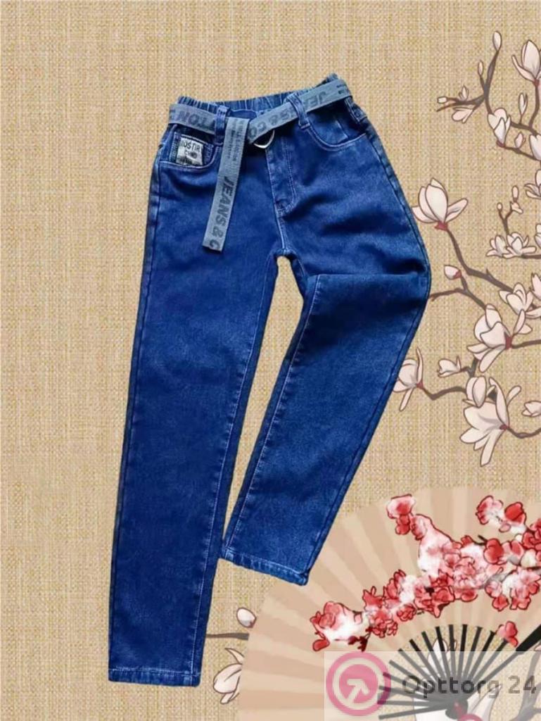 Описание: Джинсы женские утепленные василькового цвета. Прямого кроя. Пояс на широкой резинке декорирован ремнем. Есть карманы спереди и сзади.