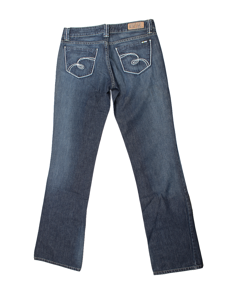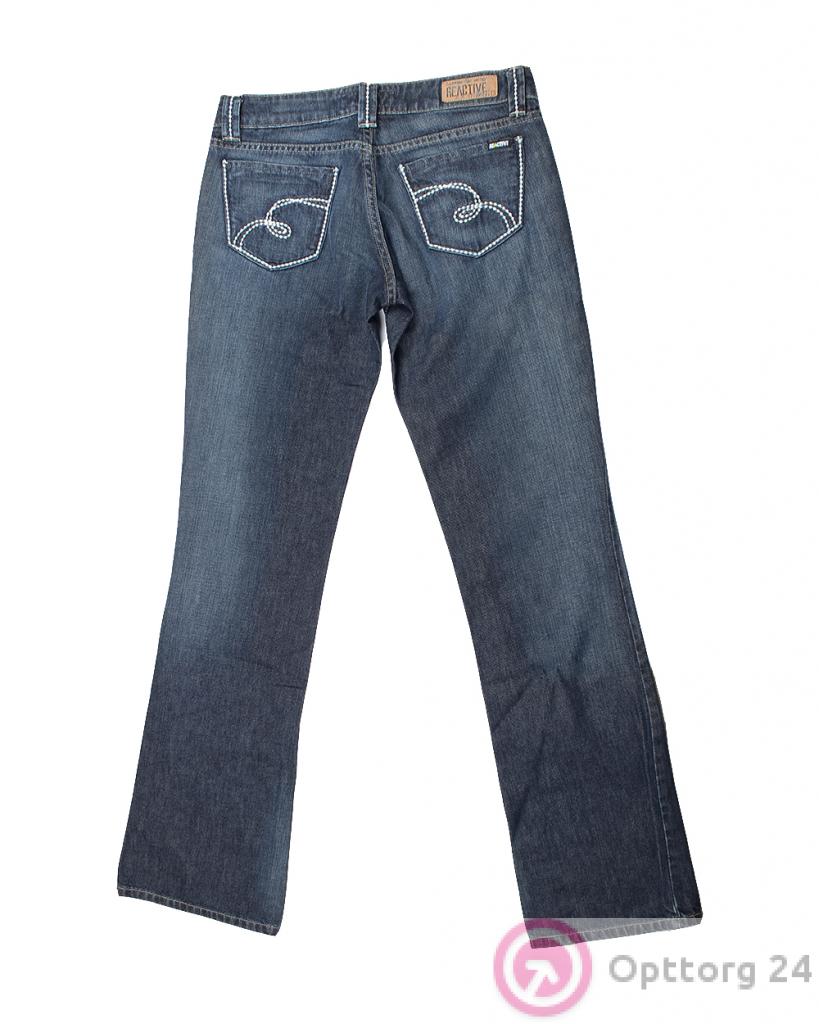 Симпатичные женские джинсы с накладными карманами сзади. Карманы украшены конрастной вышивкой.