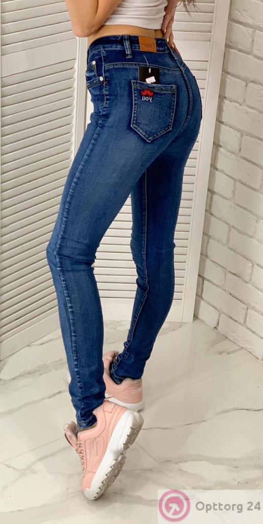 Описание: Джинсы женские темно-синего цвета с потертостями, с высокой талией. Зауженные. Застежка на пуговице и молнии. Есть шлевки под ремень. Есть четыре кармана.