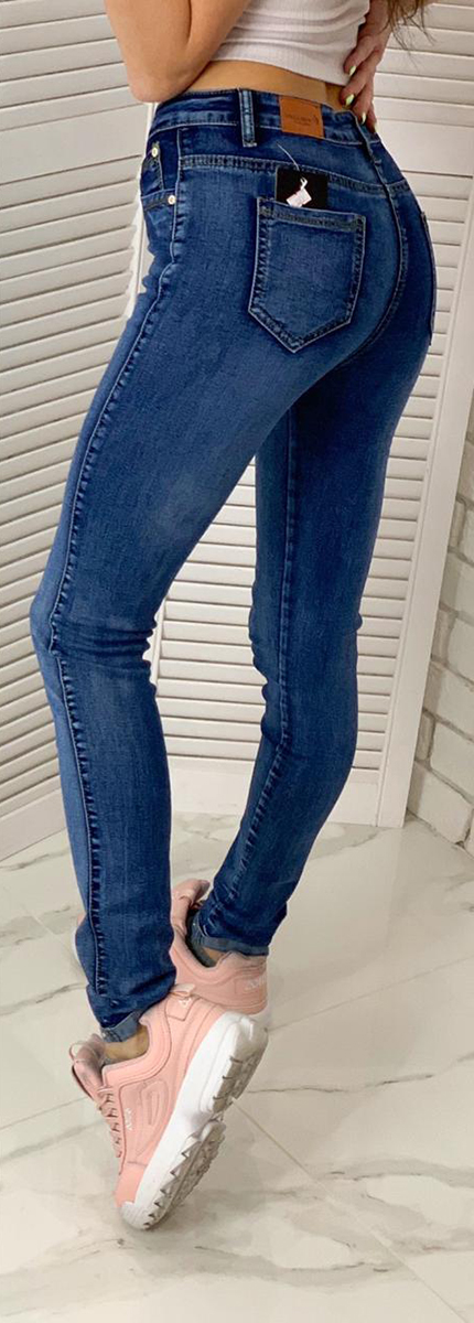 Описание: Джинсы женские синего цвета с потертостями, с высокой талией. Зауженные. Застежка на пуговице и молнии. Низ брючин с подворотом. Есть шлевки под ремень. Есть четыре кармана.