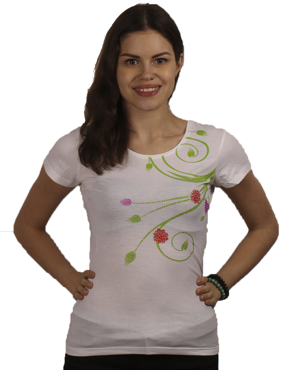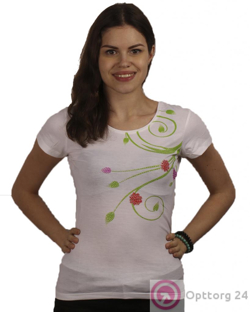 Женская футболка приталенного кроя с принтом в виде цветов.
