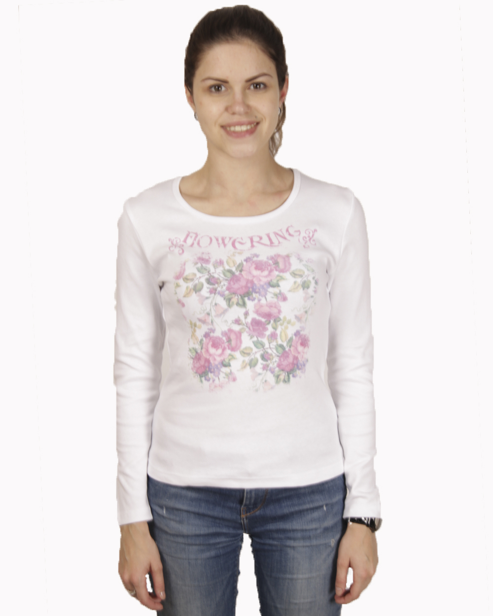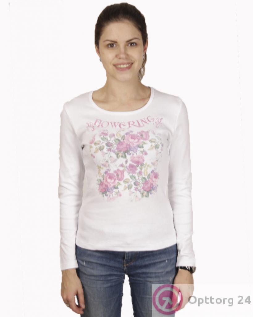 Футболка с длинным рукавом белого цвета с принтом "flowers" оптом