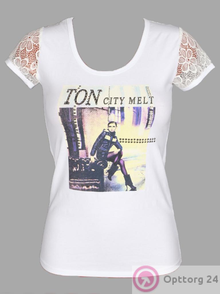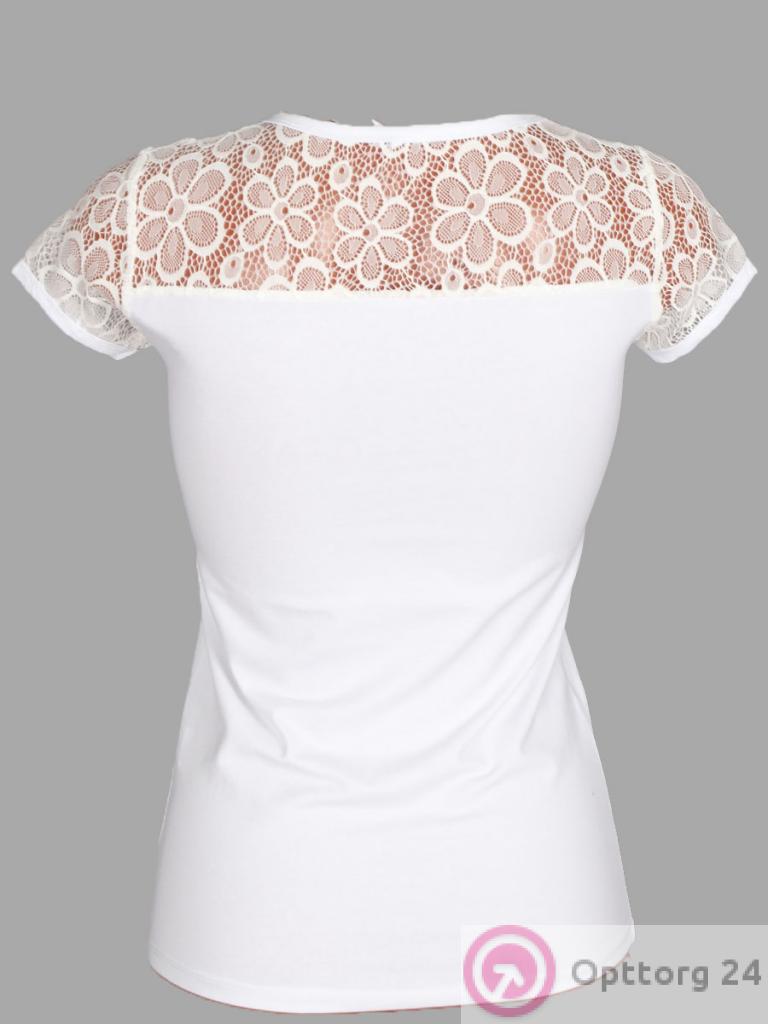 Футболка женская белого цвета с кружевным коротким рукавом. оптом