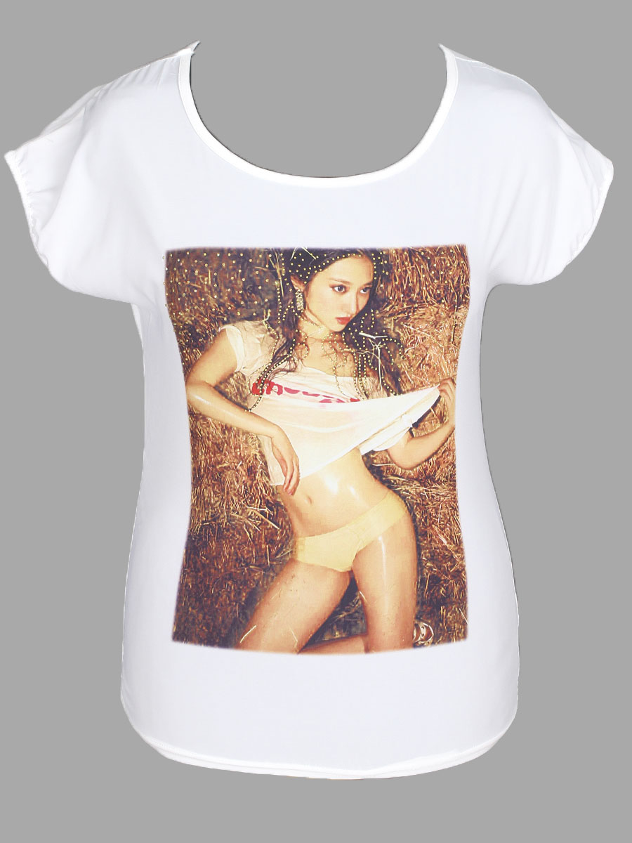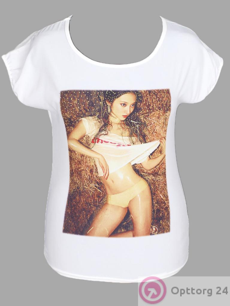 Футболка женская белого цвета с нанесенным изображением в области груди. оптом