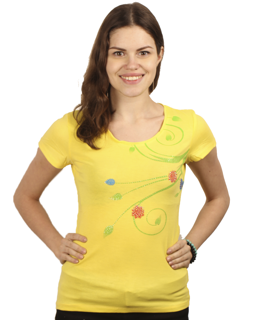 Футболка для женщин желтого цвета с принтом в виде лианы