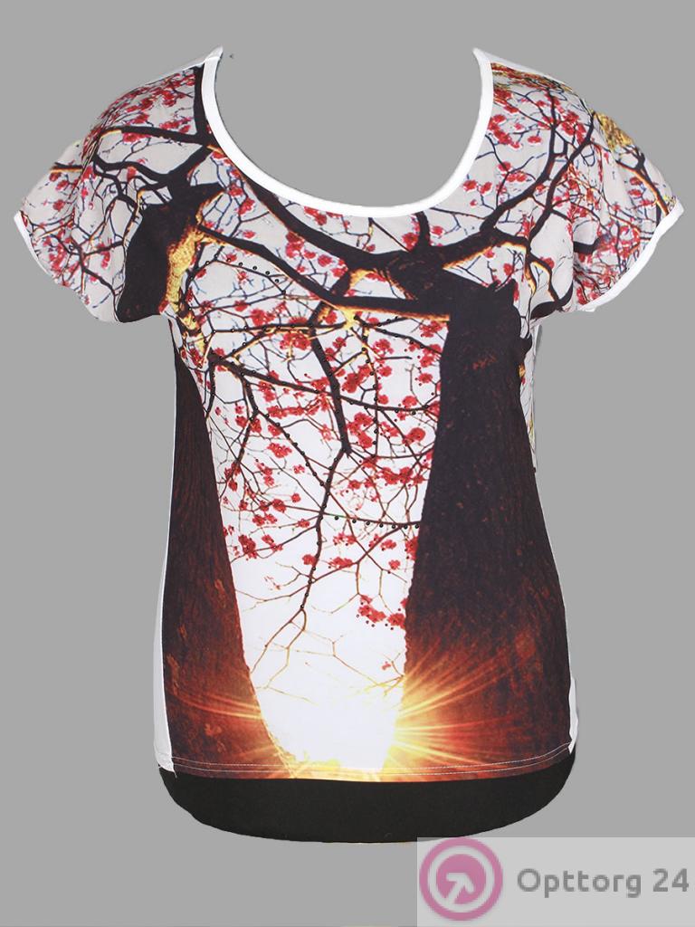 Футболка женская белого цвета с принтом в виде сакуры. оптом