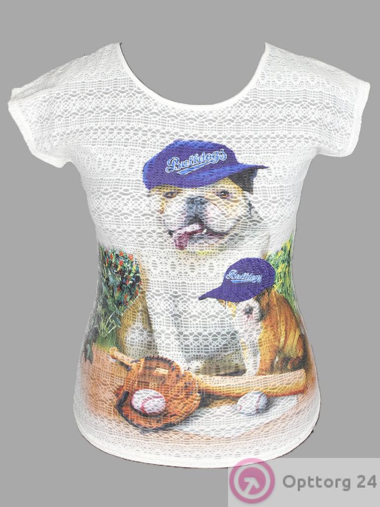 Футболка женская белого цвета с принтом в виде собаки. оптом