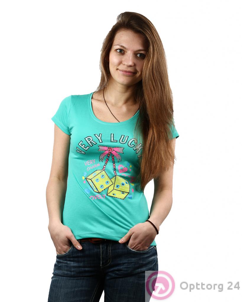 Футболка женская бирюзового цвета с принтом кубики оптом