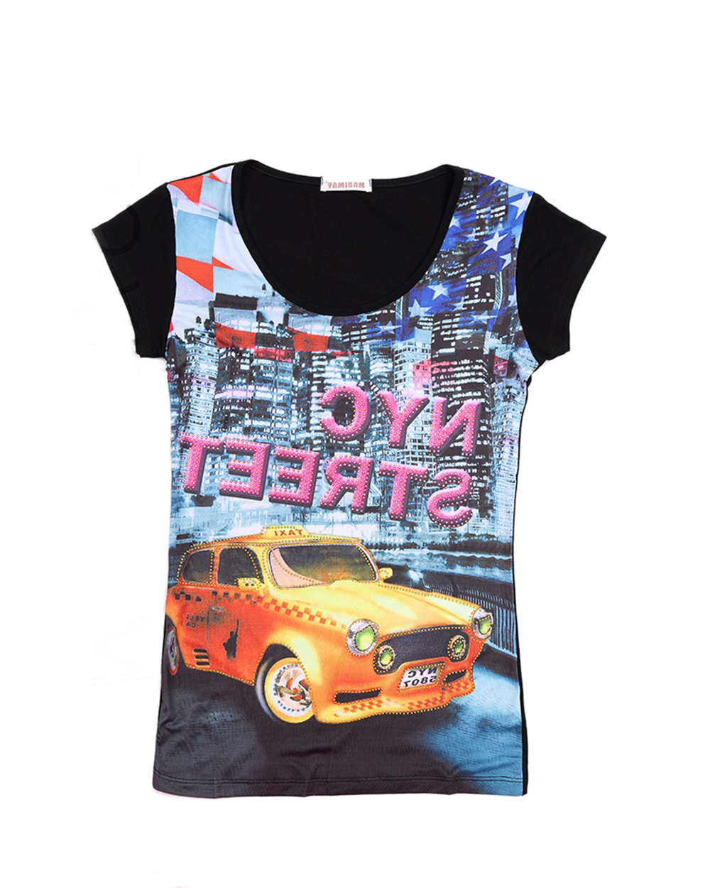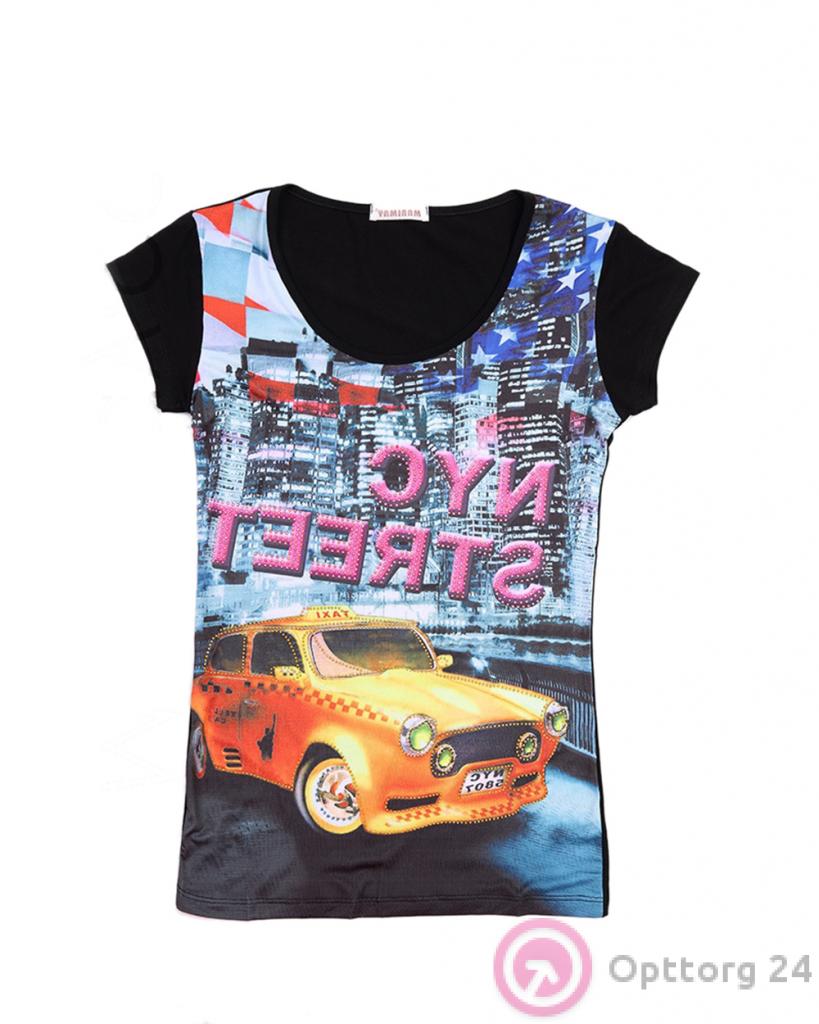 Женская футболка с красивейшим принтом NYC STREET. Качественный пошив, облегающий силуэт. Модель с округлым вырезом горловины.