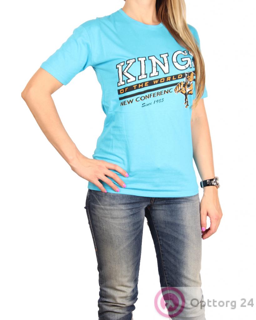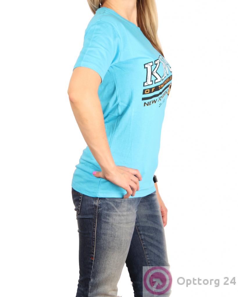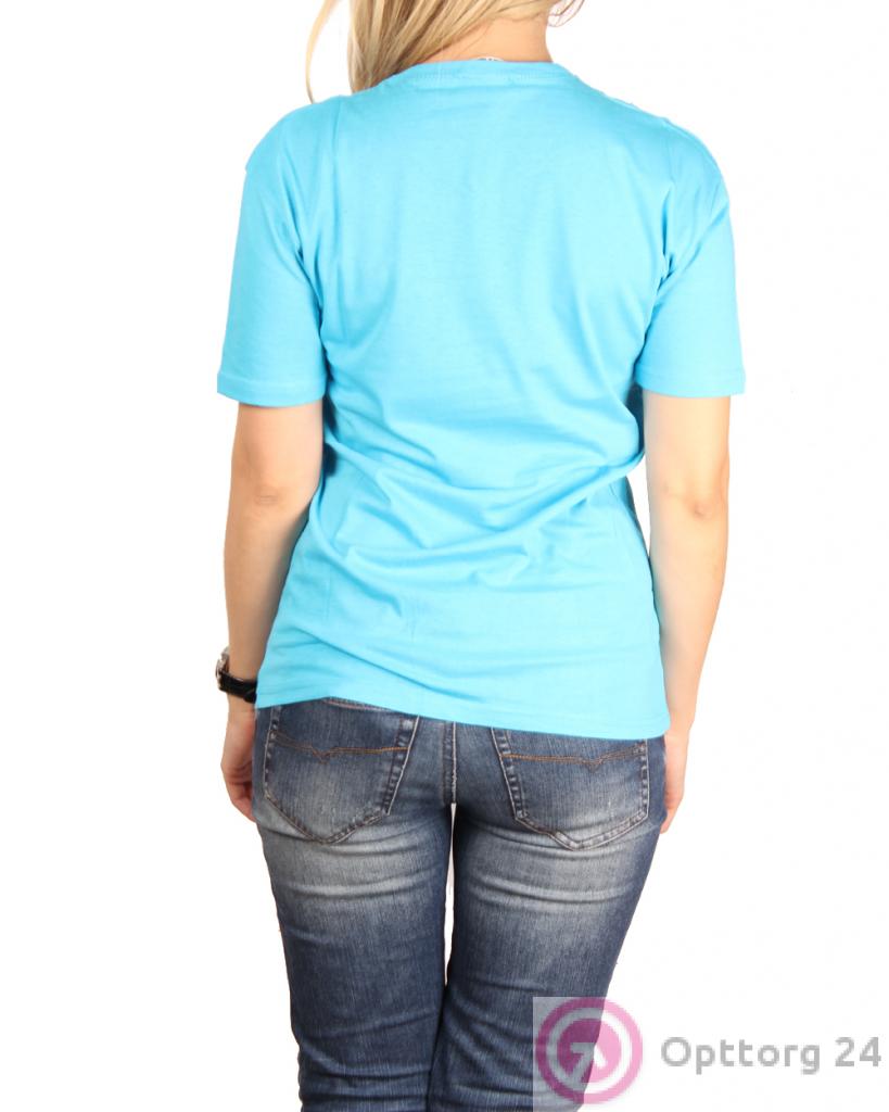 Красивая футболка, выполнена из качественного материала голубого цвета. Модель свободного кроя, с округлым вырезом. На груди красивый принт и надпись. Прекрасный вариант для носки каждый день.