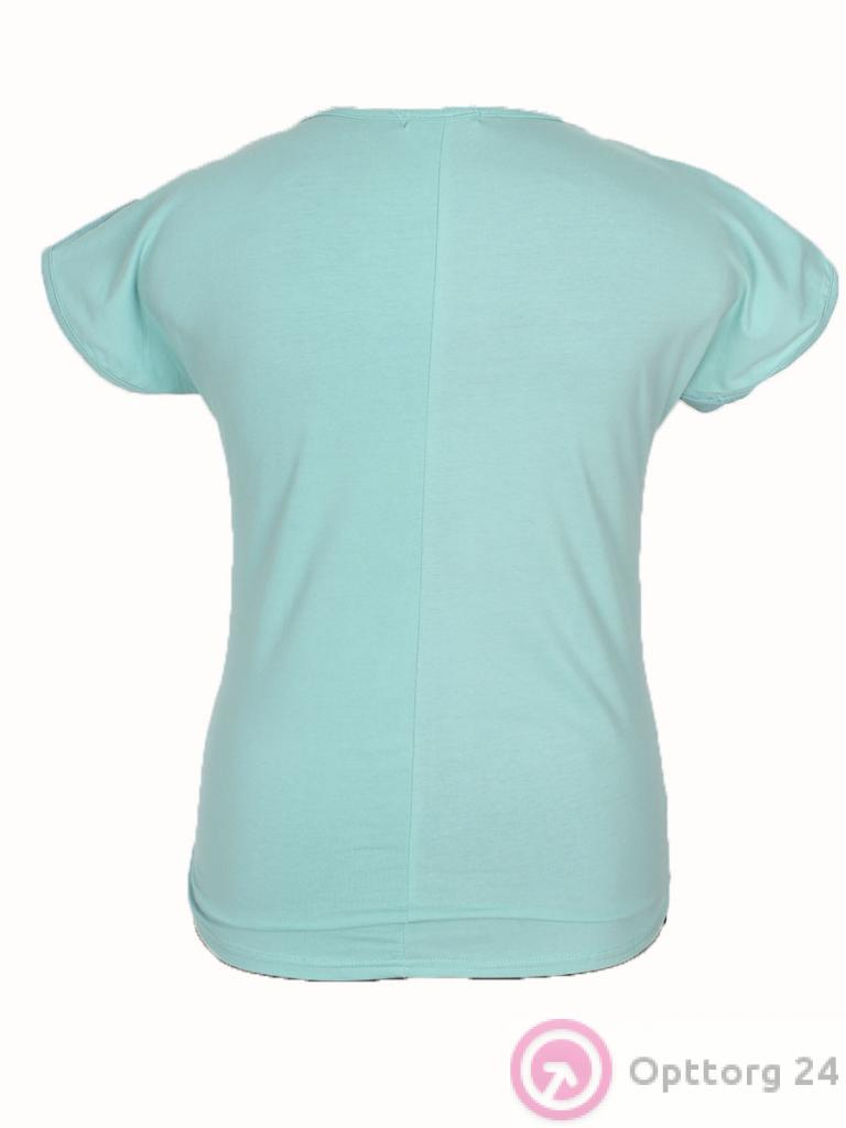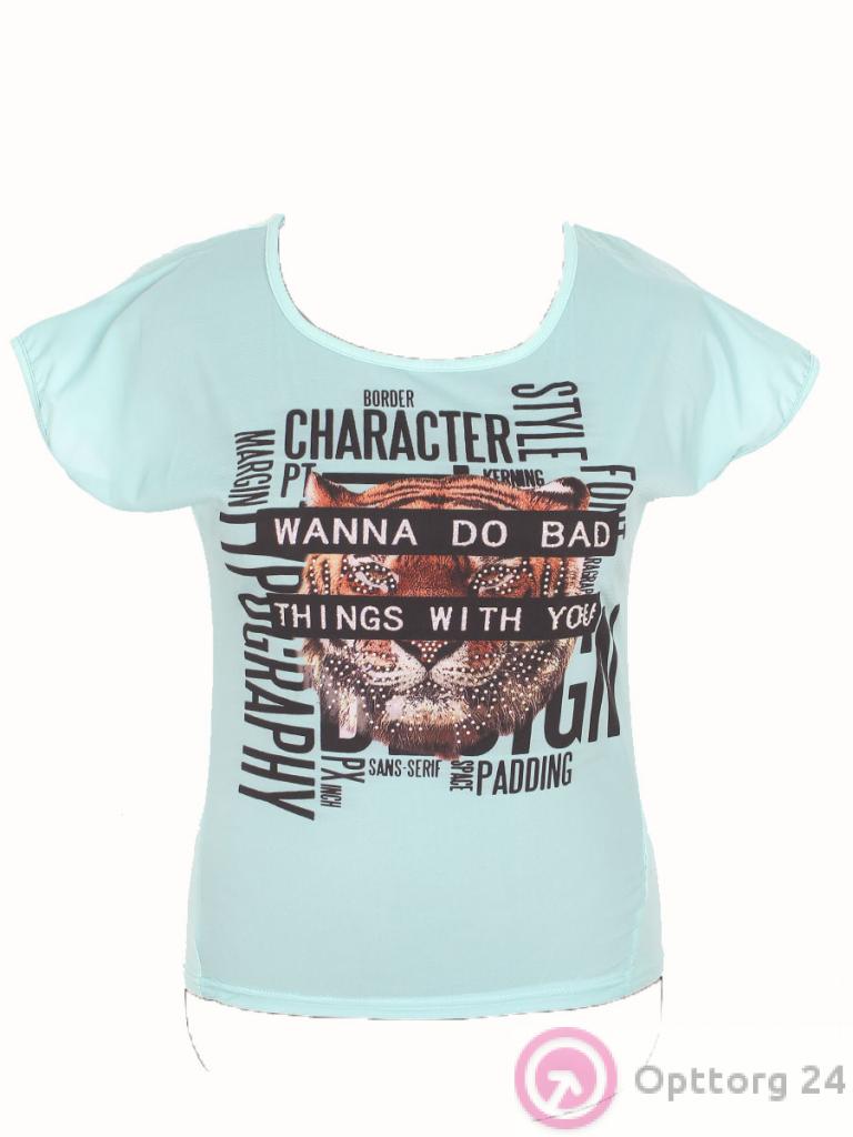 Футболка женская нежно-голубого цвета с принтом на передней части изделия. оптом