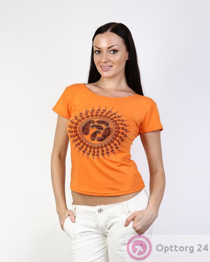 Футболка женская оранжевая с этническим принтом оптом