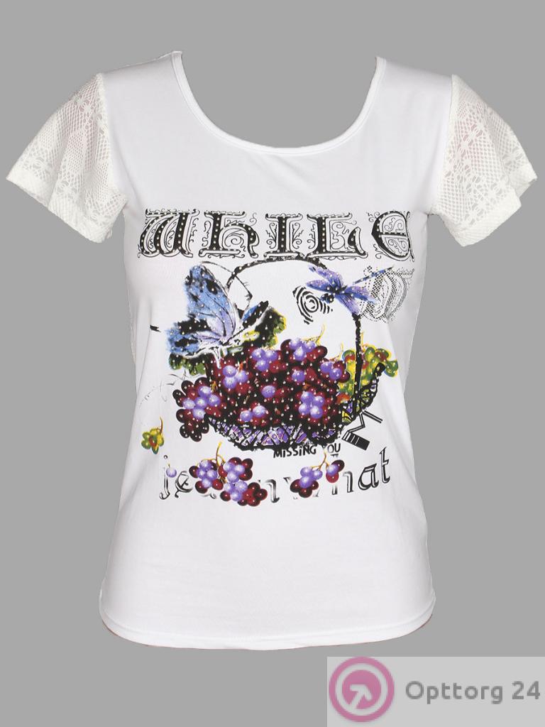 Футболка женская приталенная белого цвета с принтом. оптом