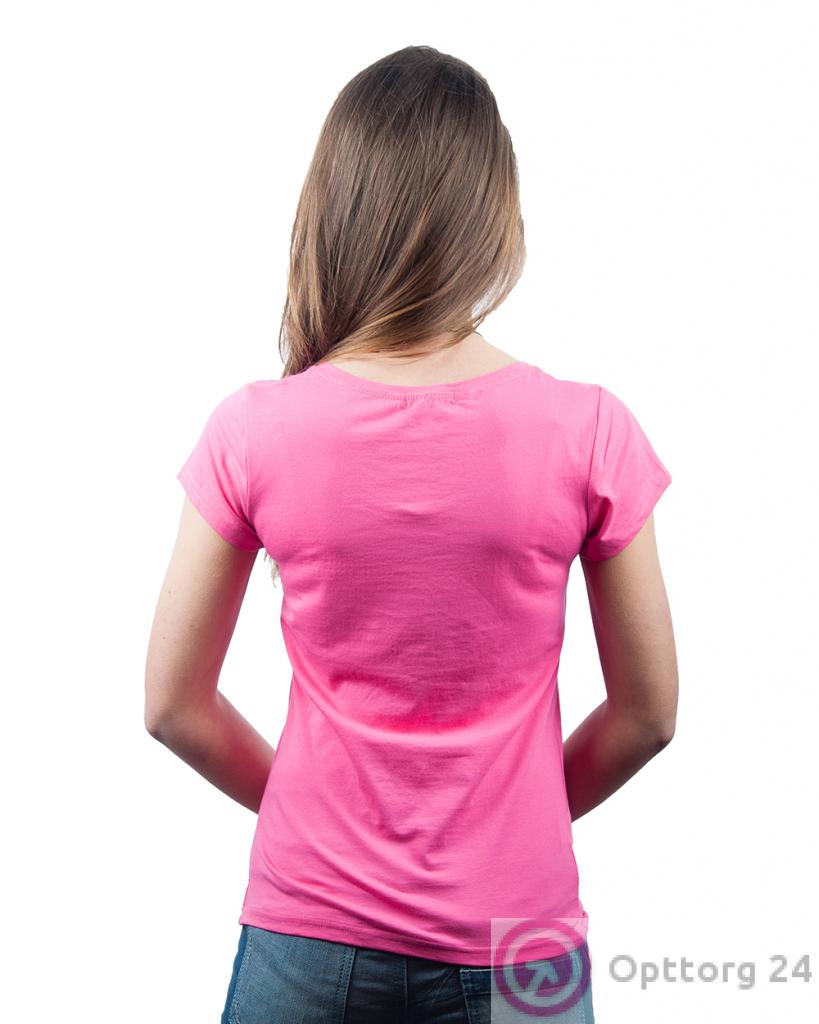 Футболка женская розовая с принтом "Велосипед" и стразами оптом