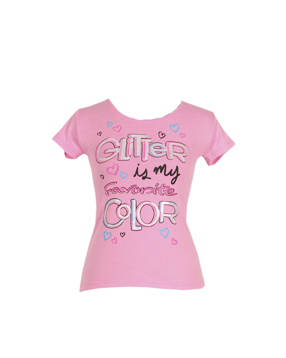Оригинальная женская футболка с соблазнительным рисунком мелких разноцветных сердечек. Нежный розовый цвет позволит изделию отлично сочетаться с одеждой любой расцветки.