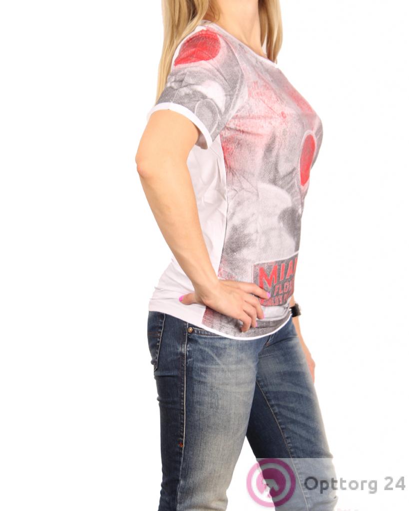 Футболка женская с геометрическим принтом, цвет белый оптом