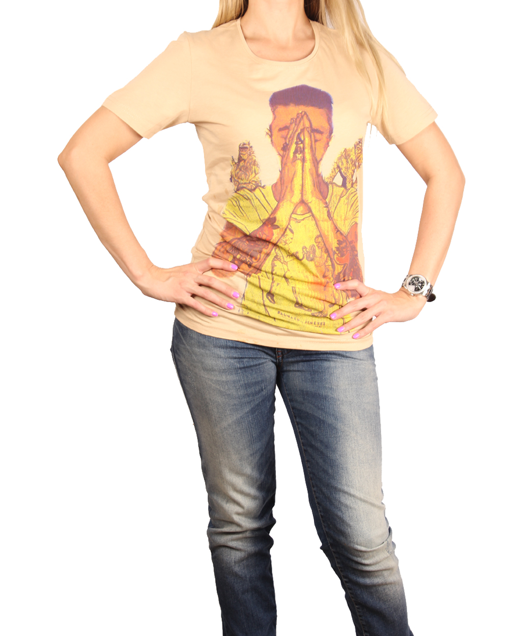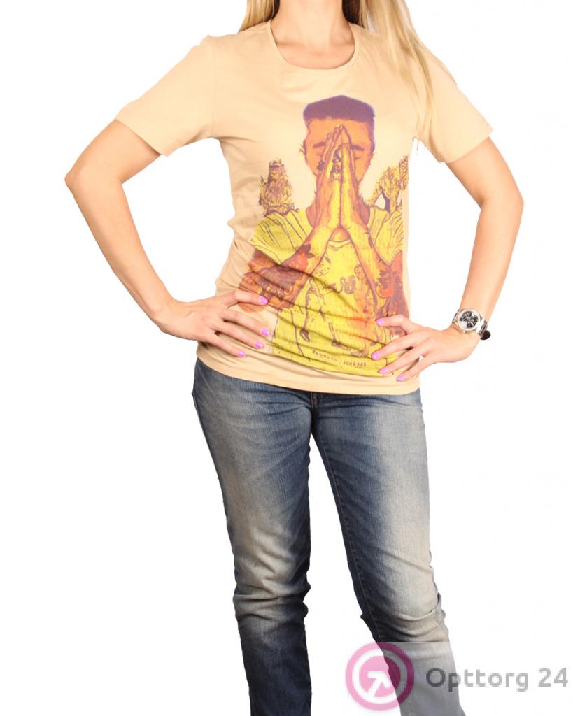 Стильная и удобная женская футболка желтого цвета с красивым принтом спереди. Прекрасно подойдет для любительниц casual и спортивного стиля. Рукава футболки до середины предплечия. Длина изделия – средняя. Выполнена из качественной ткани. Состав хлопок 95%, 5 % эластан.
