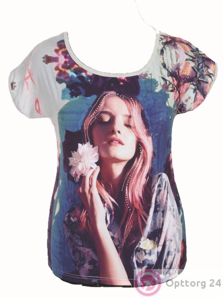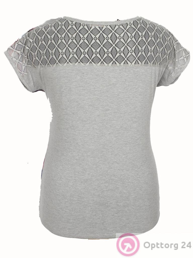 Футболка женская серого цвета с изображением женщины на передней части изделия. оптом
