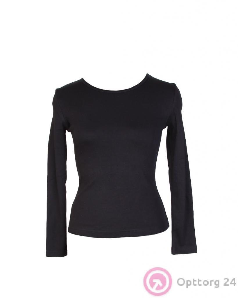 Футболка женская спортивная черная с длинным рукавом оптом