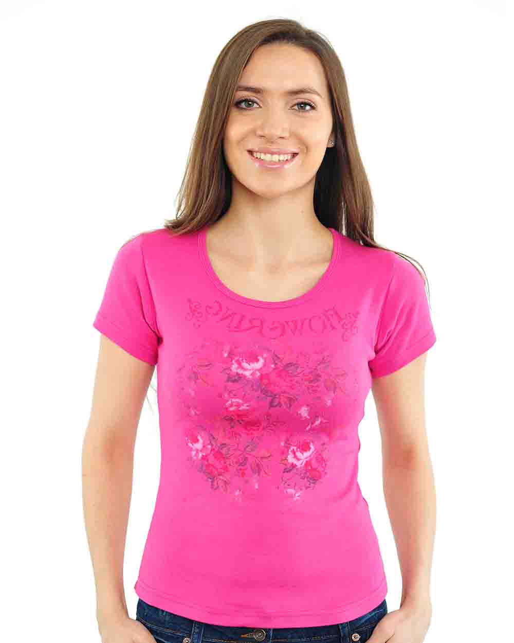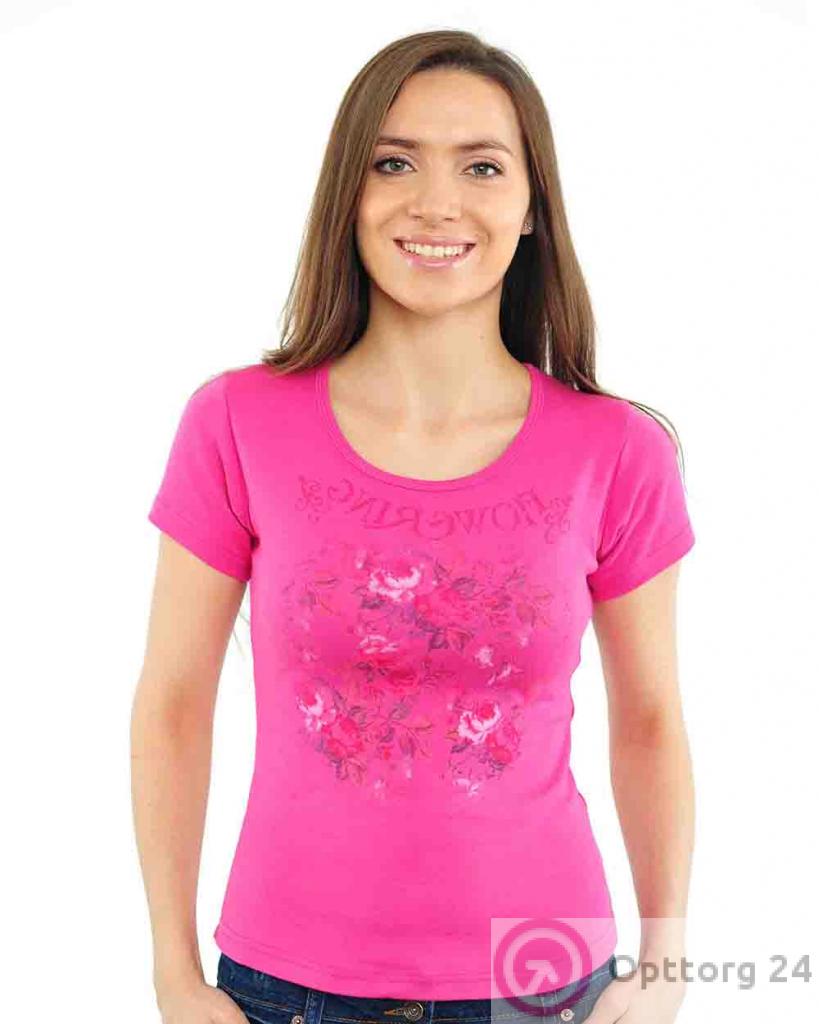 Футболка женская темно-розовая с цветочным принтом оптом