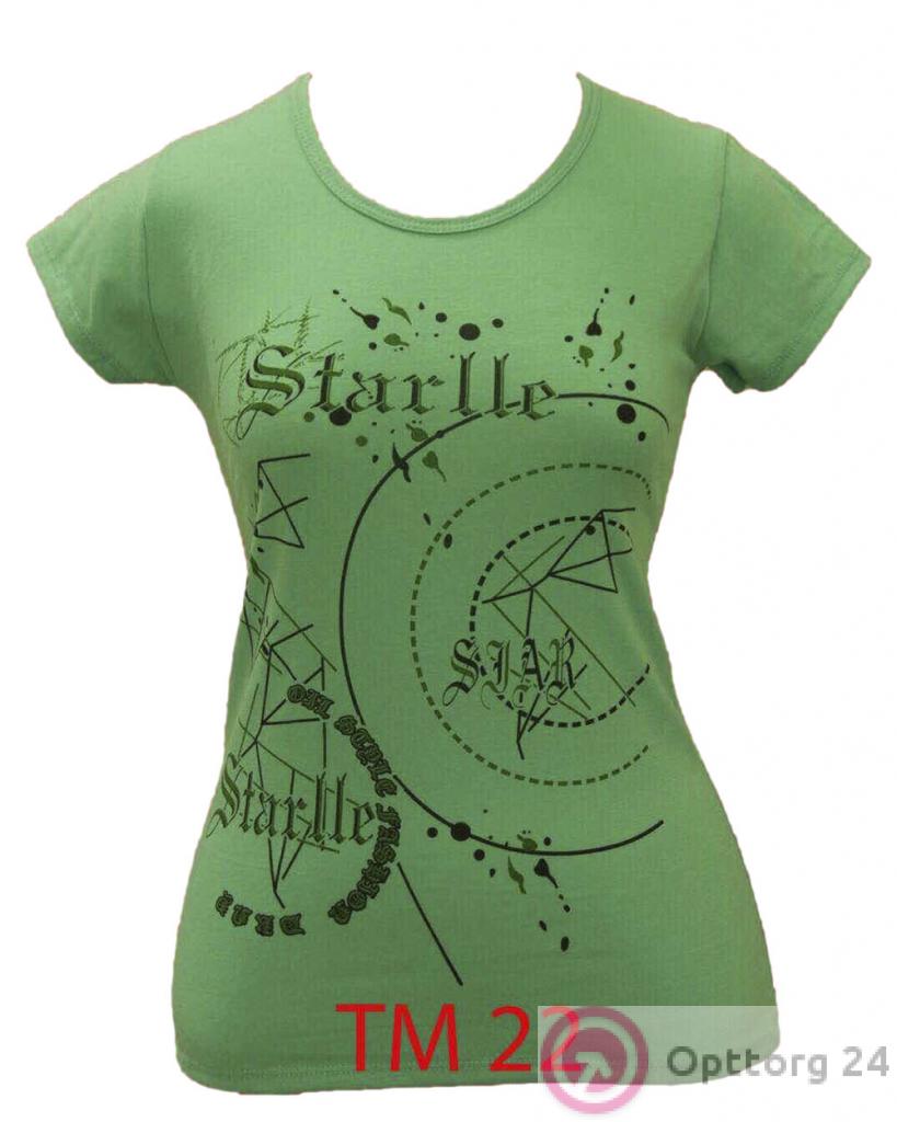Футболка женская зеленого цвета с буквенным принтом оптом