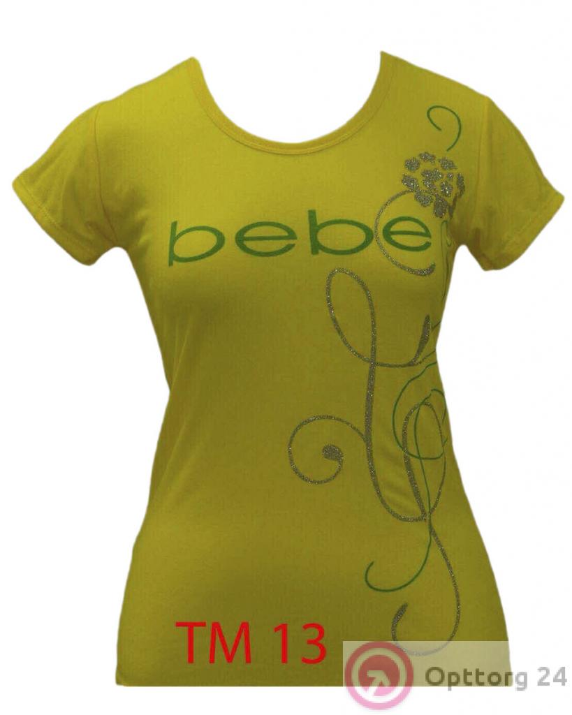 Красивая женская футболка яркого желтого цвета. Изделие украшено надписью на груди и принтом с блесками.