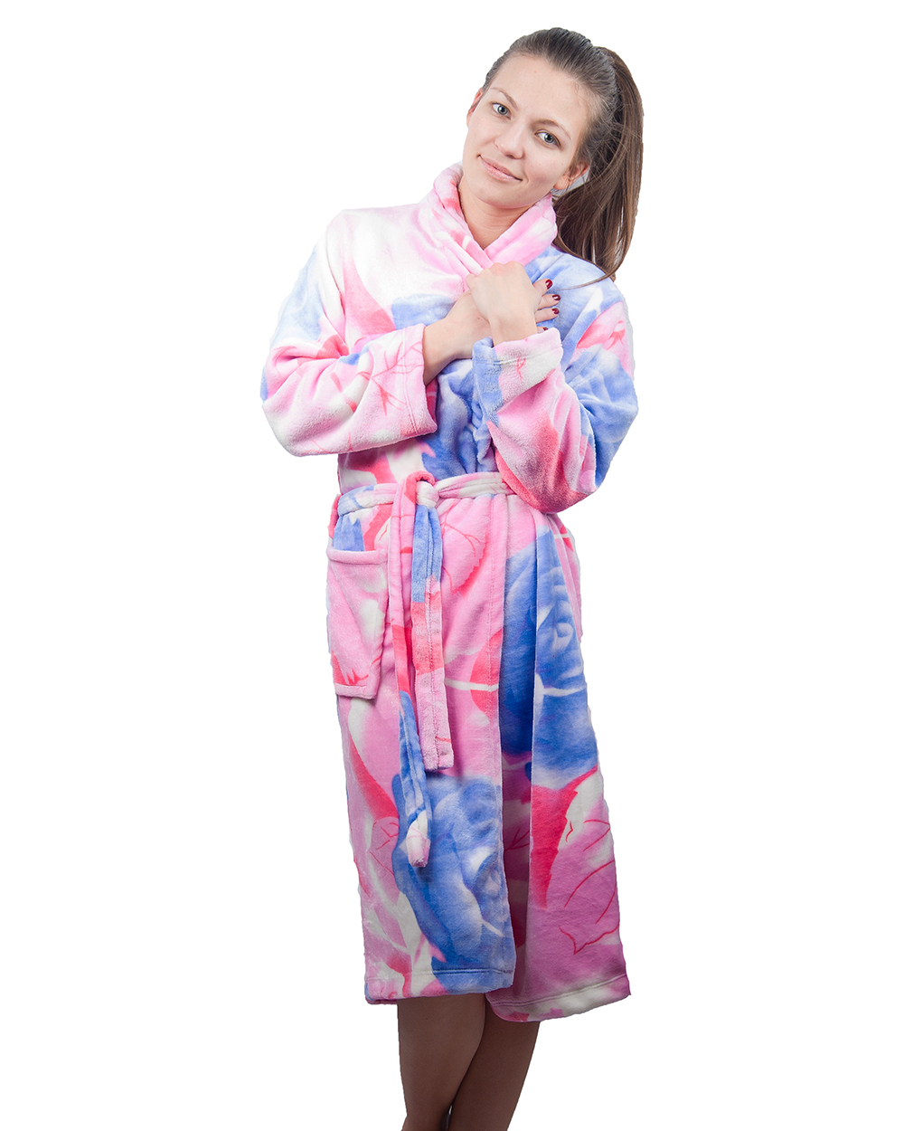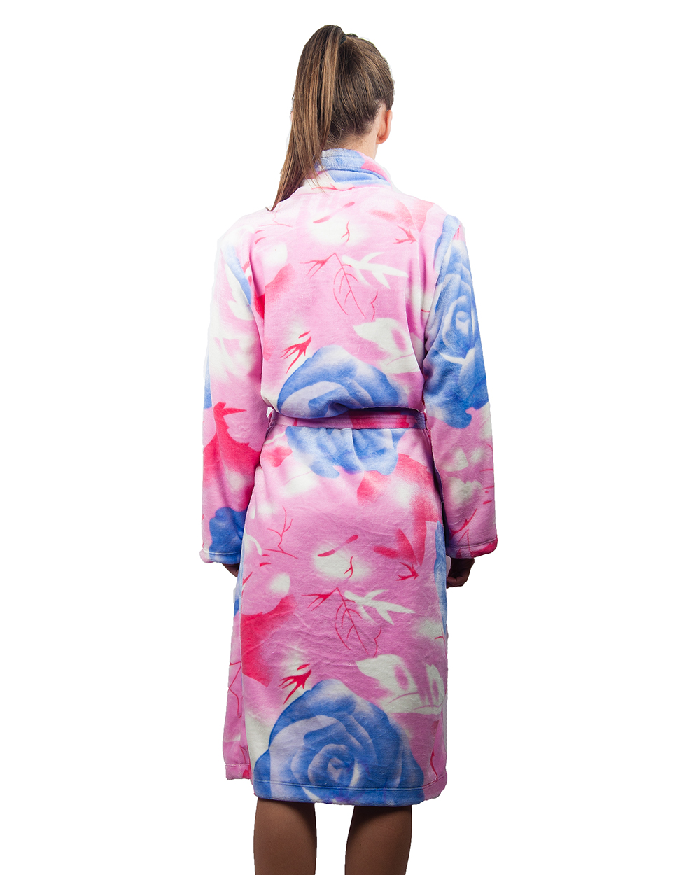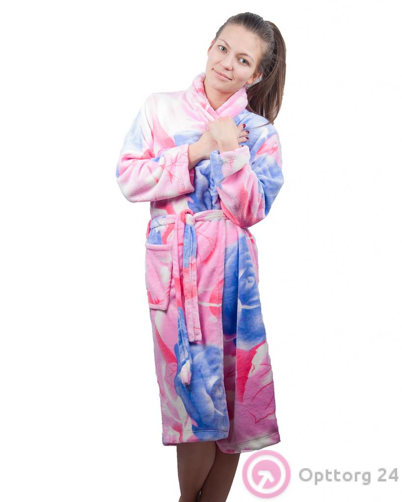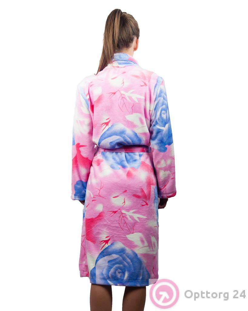 Халат женский розовый с синими цветами оптом