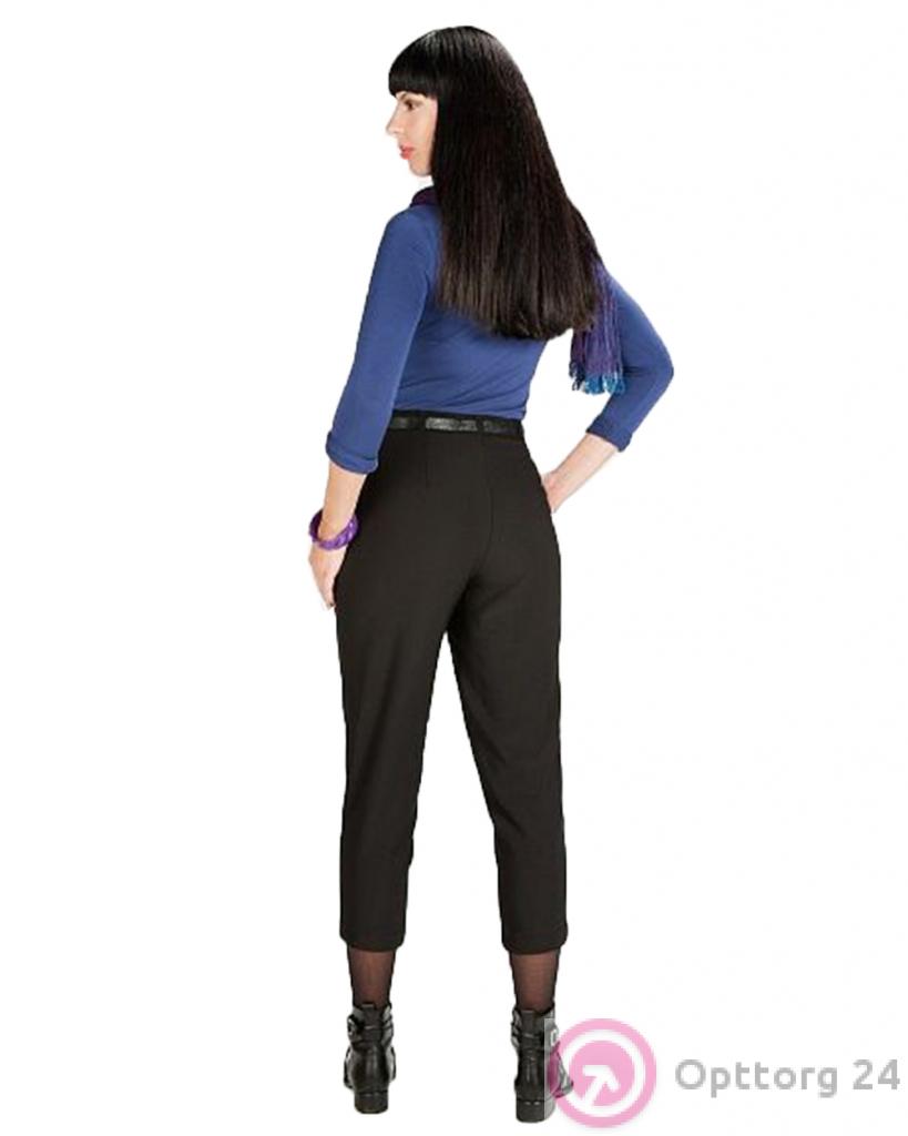 Капри женские с тонким глянцевым поясом чёрные оптом