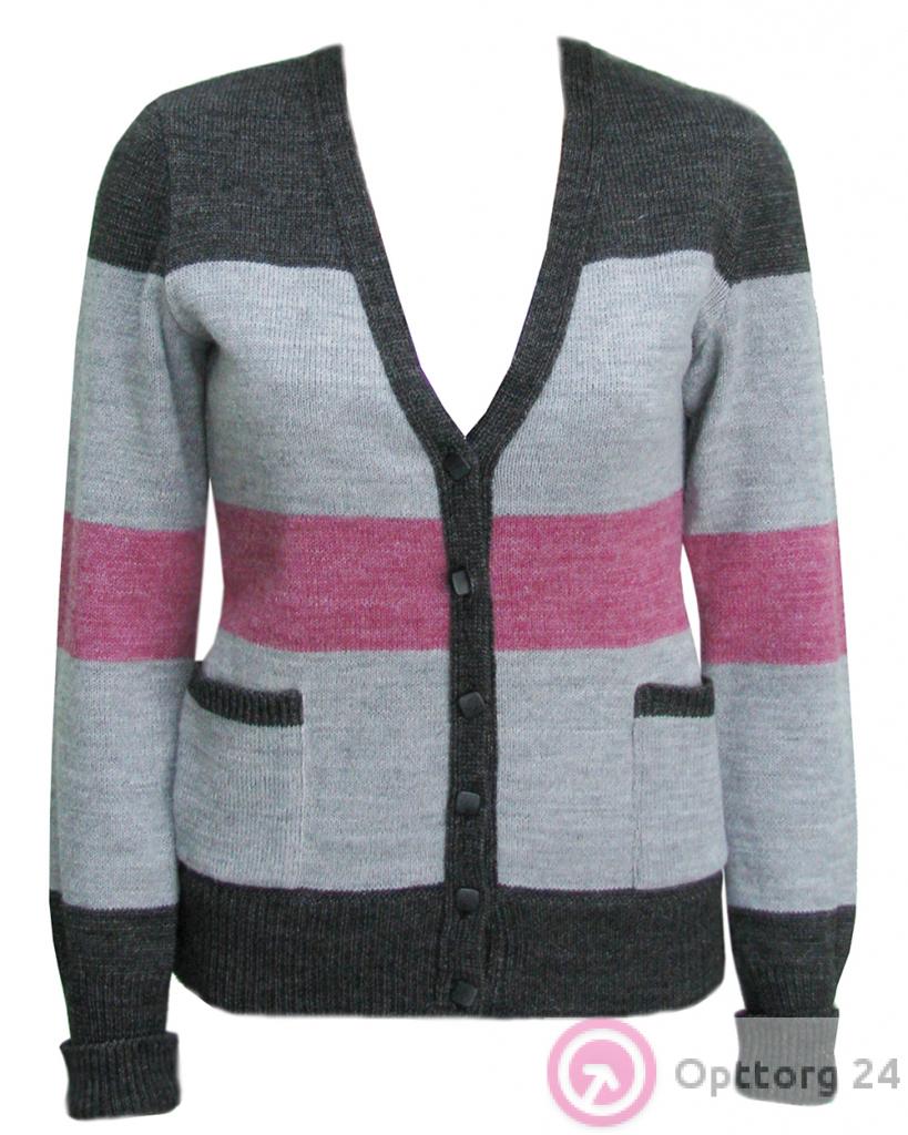 Кардиган женский серый со светлой полосой оптом