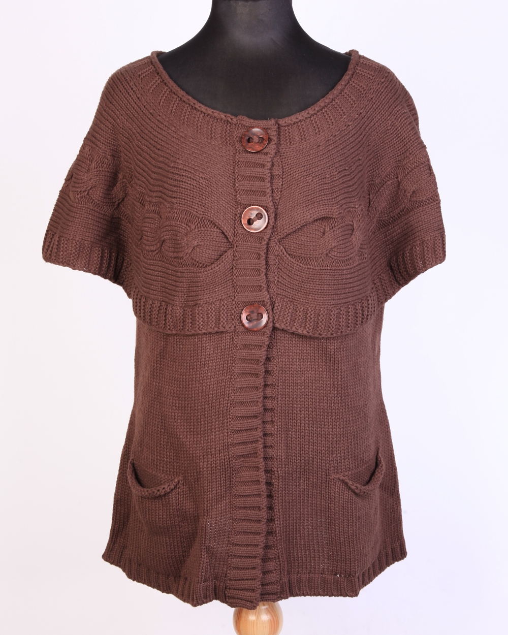 Этот теплый и уютный кардиган пряного шоколадного оттенка станет прекрасным дополнением милого зимнего образа. Необычная вязка добавляет очарования, а кармашки — практичности.