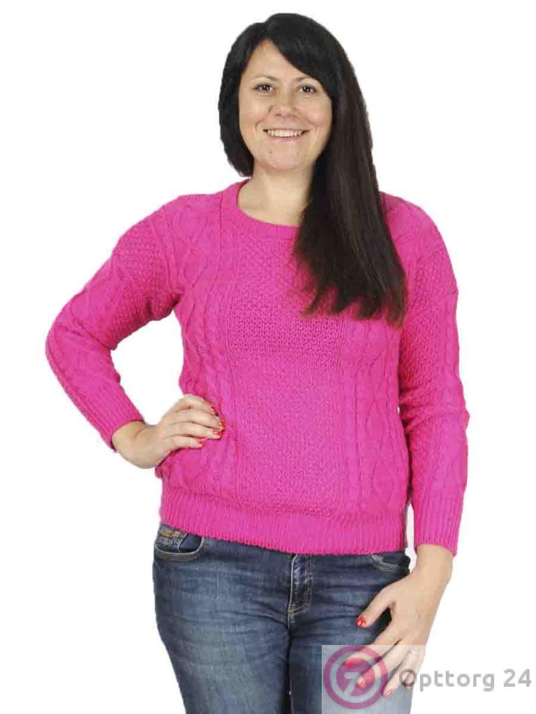 Женская вязанная кофта с косами яркого цвета фуксия. модель с длинным рукавом.