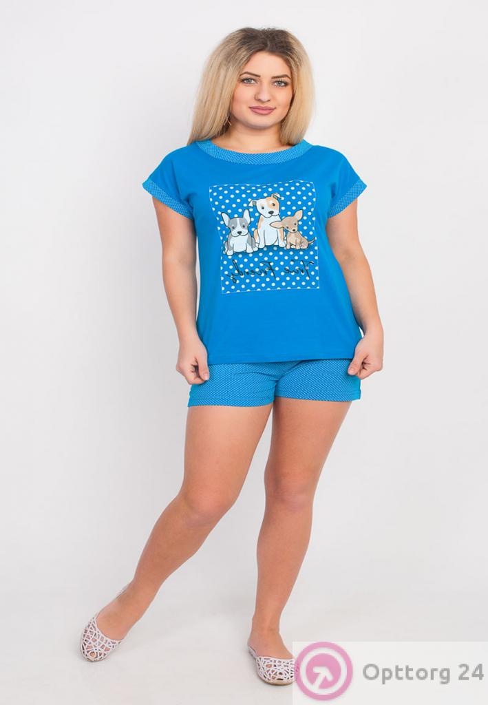Комплект женский футболка+шорты синий оптом