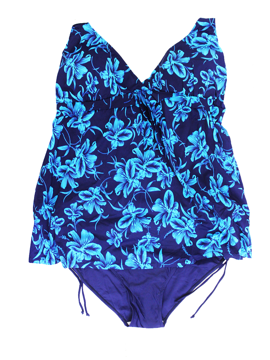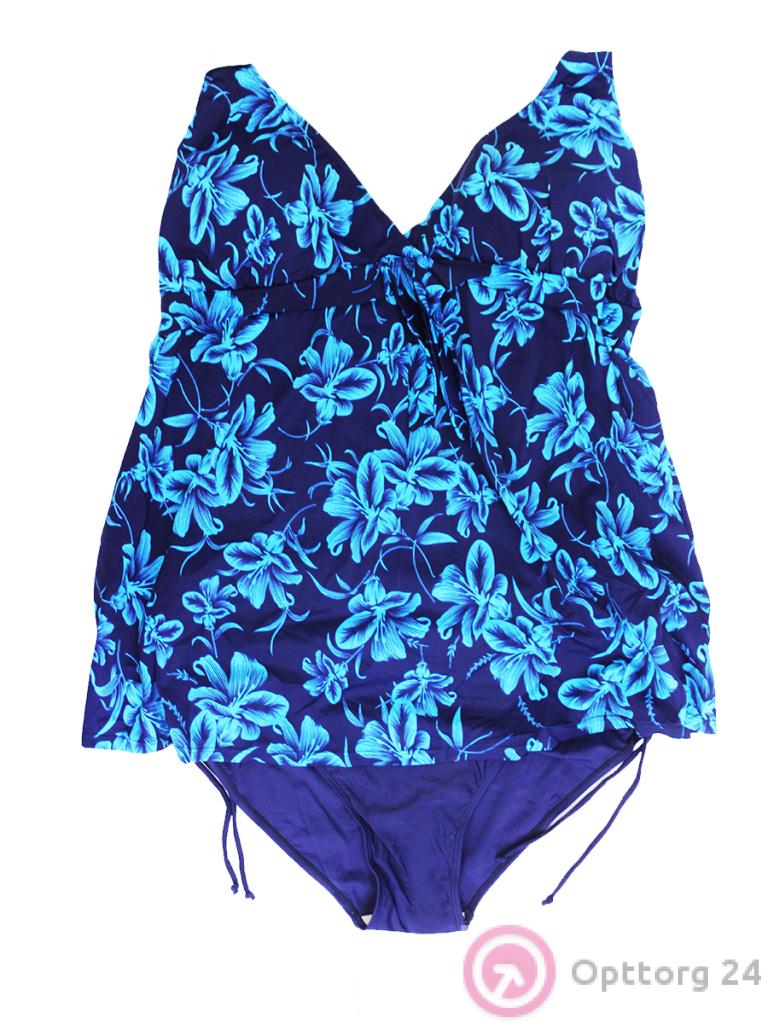 Костюм купальный женский синего цвета с цветочным принтом(64-72р) оптом