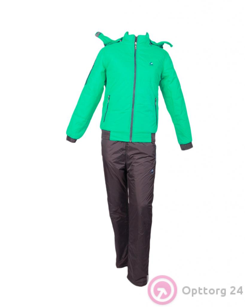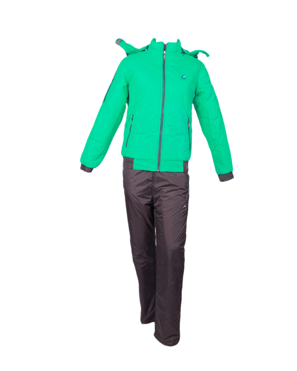 Горнолыжный костюм на синтепоне 250 гр. В набор входит куртка зеленого цвета и черных брюк.