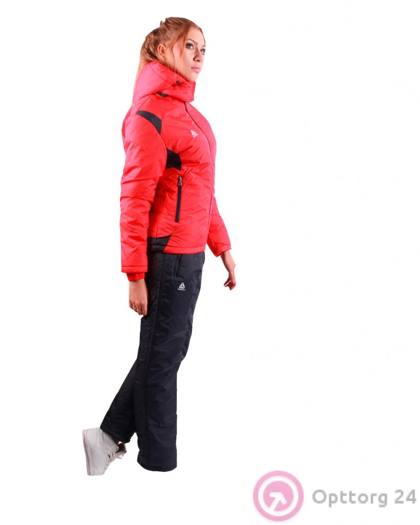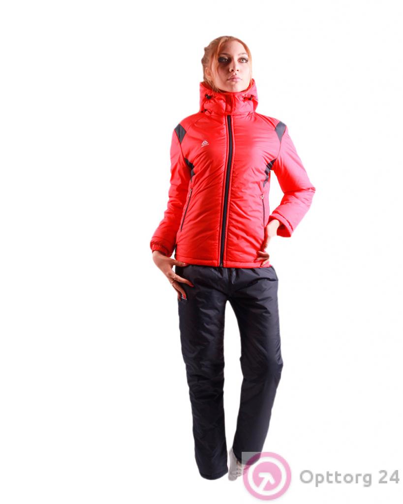 Горнолыжный костюм красного цвета. Куртка с воротником-стойкой и капюшоном. Утеплитель синтепон 250 гр.