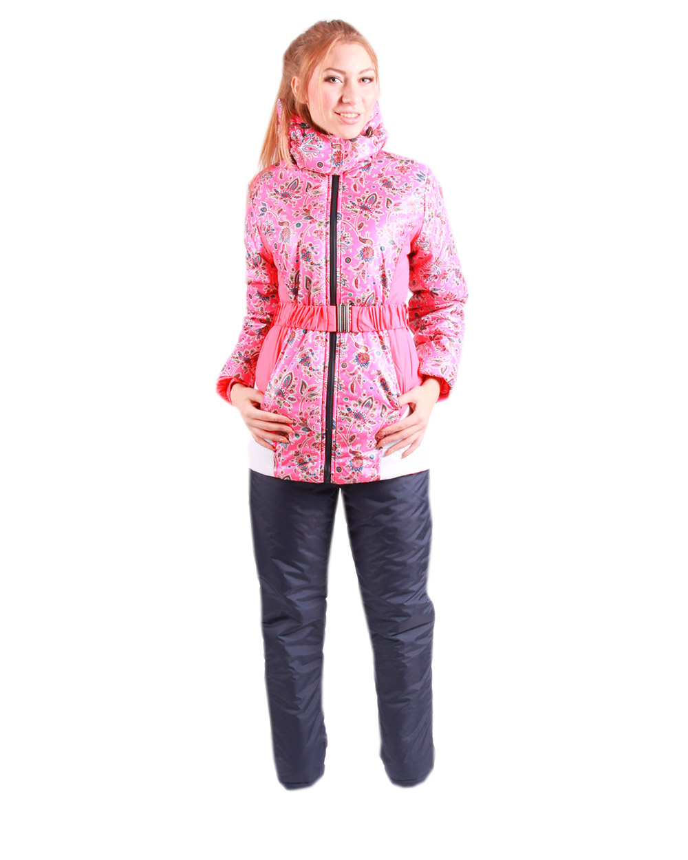 Женский горнолыжный костюм с курткой до середины бедра. Куртка дополнена поясом.Костюм утеплен синтепоном 250 гр.