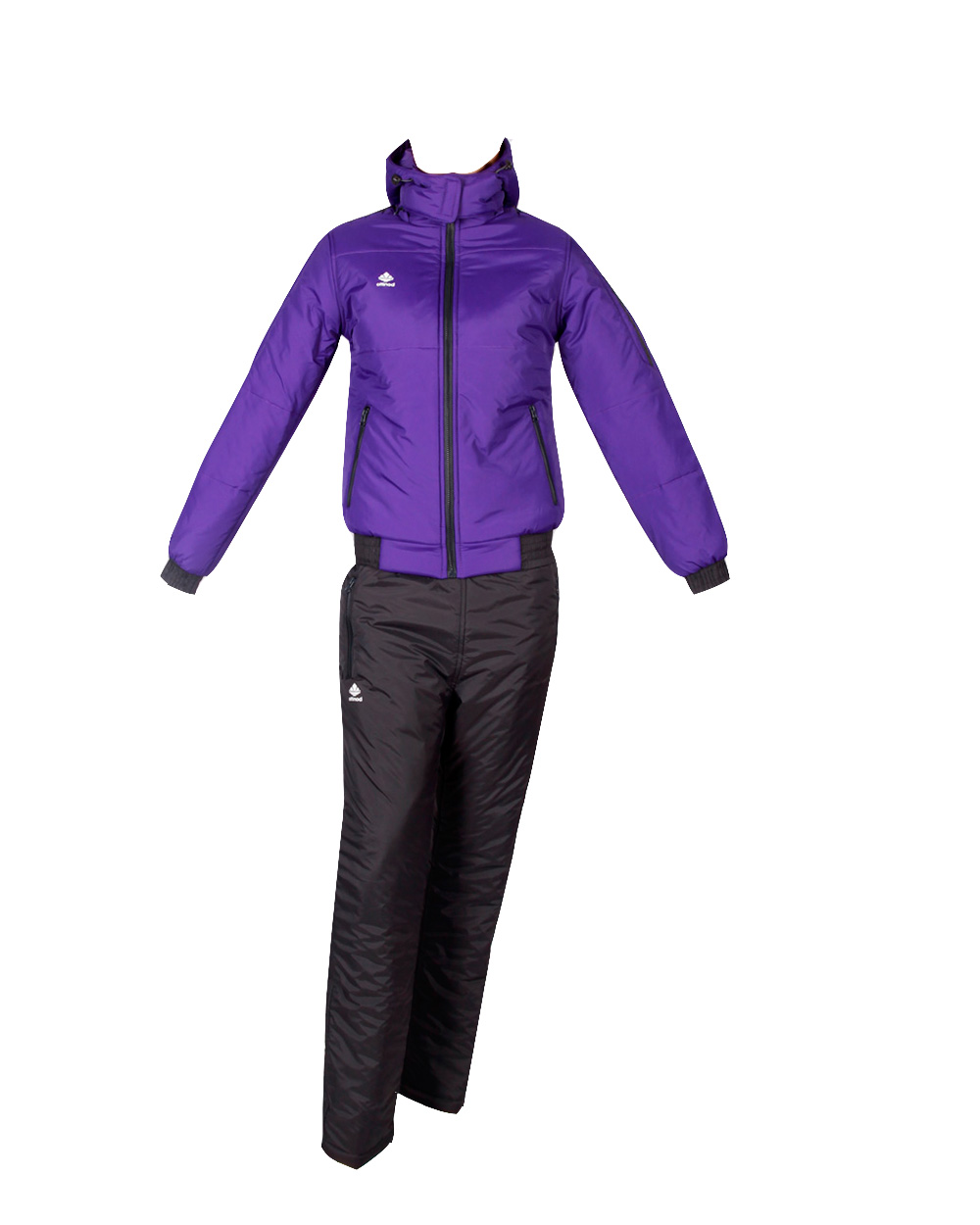 Женский теплый костюм фиолетового цвета. Куртка имеет капюшон на молнии, который можно отстегнуть. Утеплитель - синтепон 300 гр.