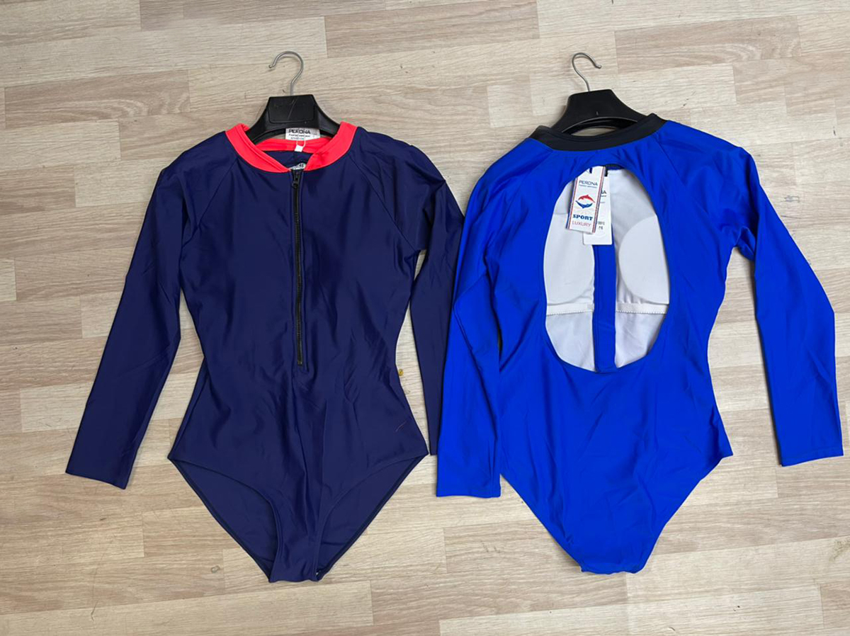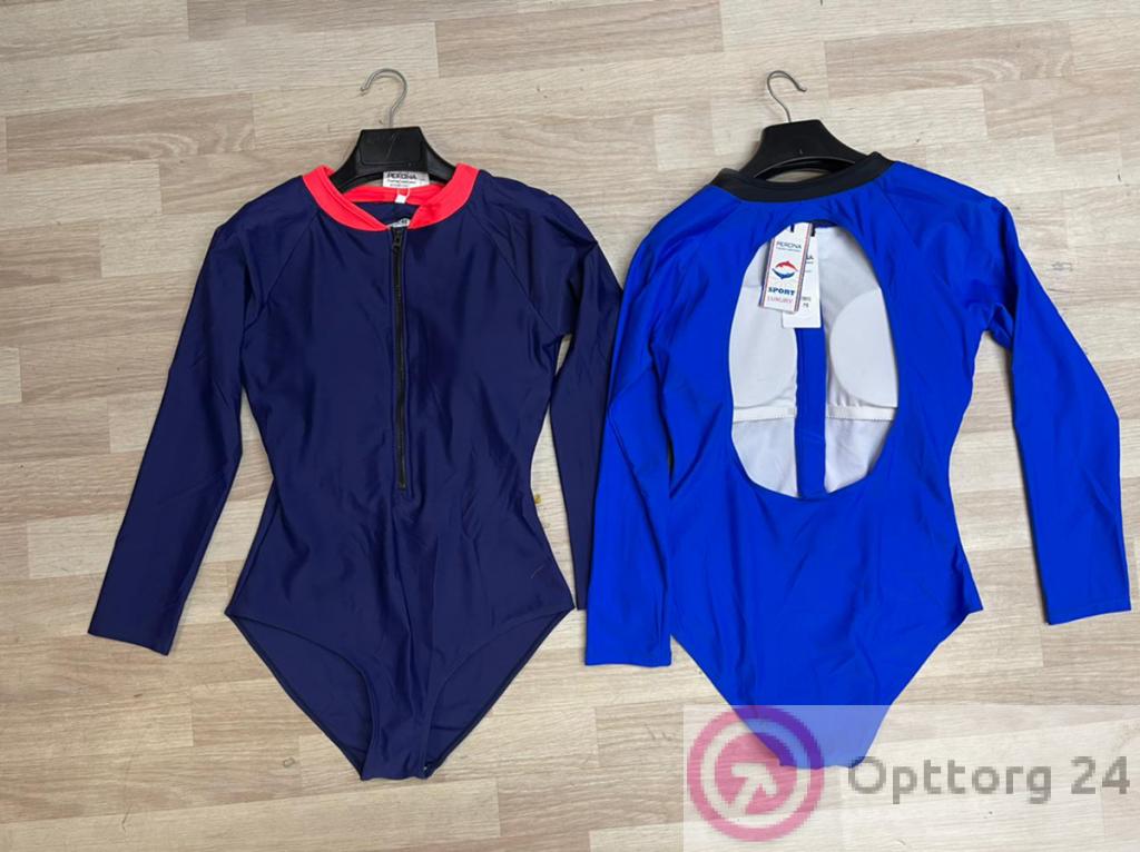 Описание: Костюм женский купальный с длинным рукавом, закрытого типа. Застежка спереди на молнии. Сзади овальный вырез. Чашечки со вставкой, которые можно легко убрать.