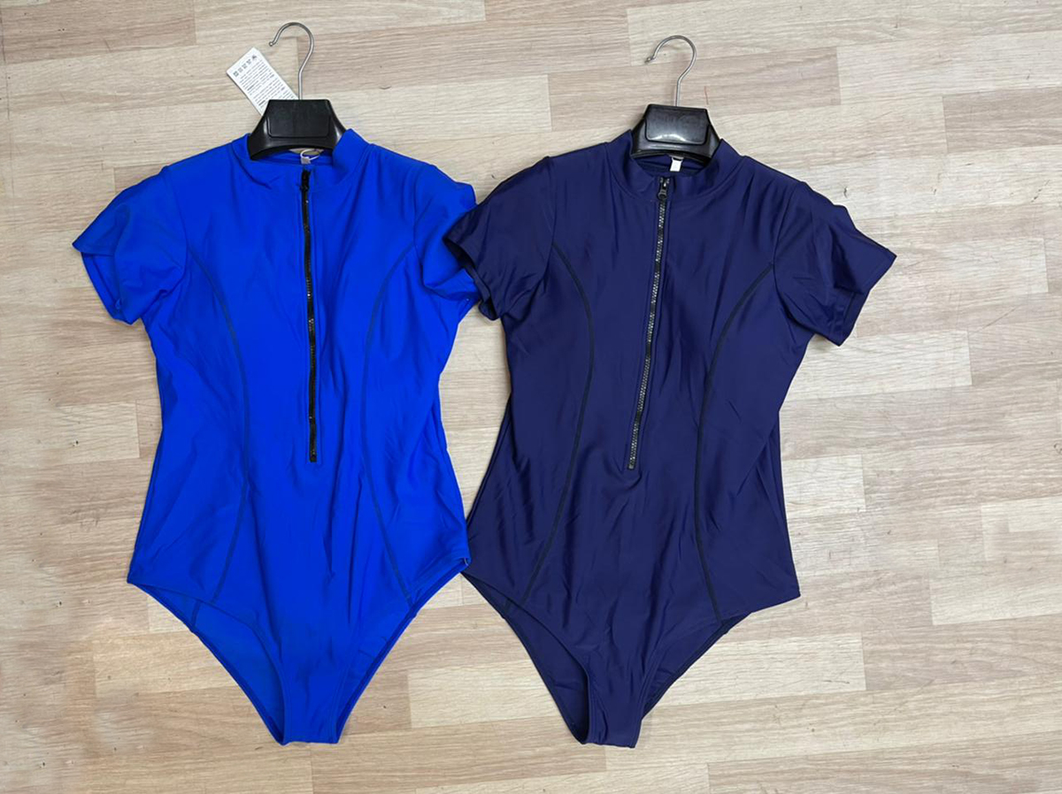 Описание: Костюм женский купальный с коротким рукавом, закрытого типа. Застежка спереди на молнии. Воротник стоечка. Чашечки со вставкой, которые можно легко убрать.