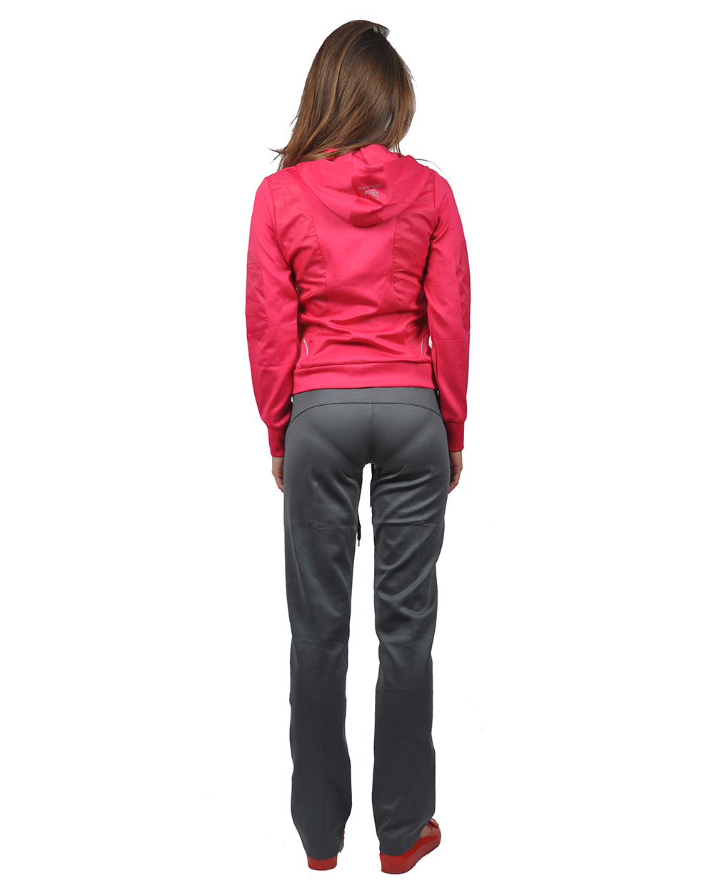 Сочный малиновый верх, прекрасно оттеняющий нейтральный серый цвет удобных штанов, разнообразит цветовую гамму ваших тренировок. Свободный пошив позволит с комфортом выполнять все упражнения.