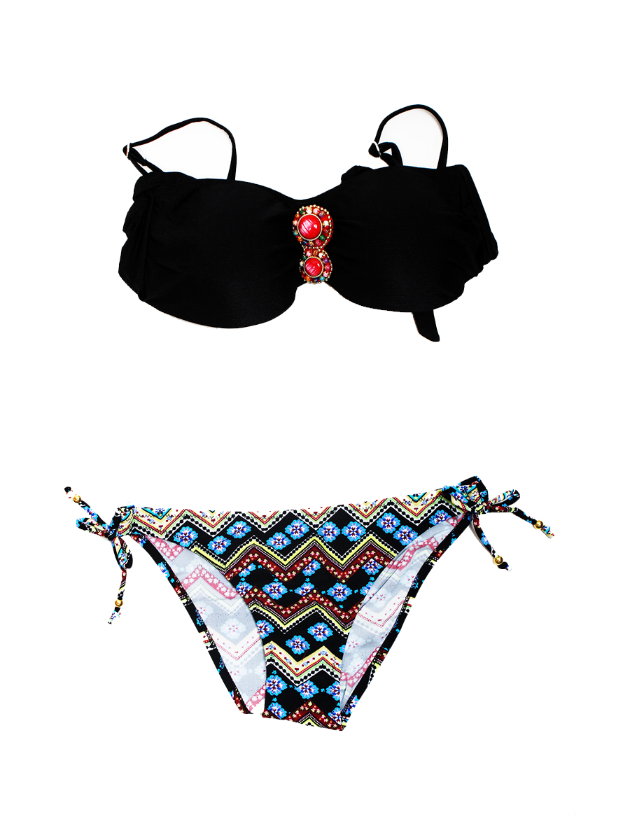 Краткое описание: Купальник для женщин раздельный, модель балконет, купальник молодежный, чашка твердая, на лифе брошь, трусы регулируются завязками