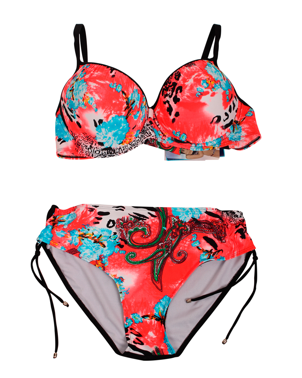 Великолепная пляжная пара для дам размера плюс. Бюст – стачные дублированные чашки на каркасной поддержке с регулировкой по линии декольте. Бюст фиксируется на теле при помощи регулируемых бретелей и фирменной серебряной застежки. Плавки классической посадки с комфортной шириной бочка.