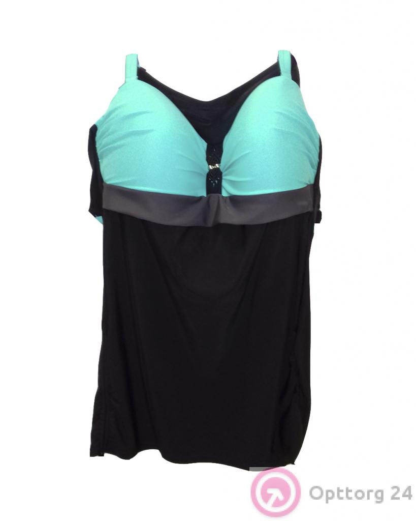 Купальник-майка синего цвета с бирюзовым лифом оптом