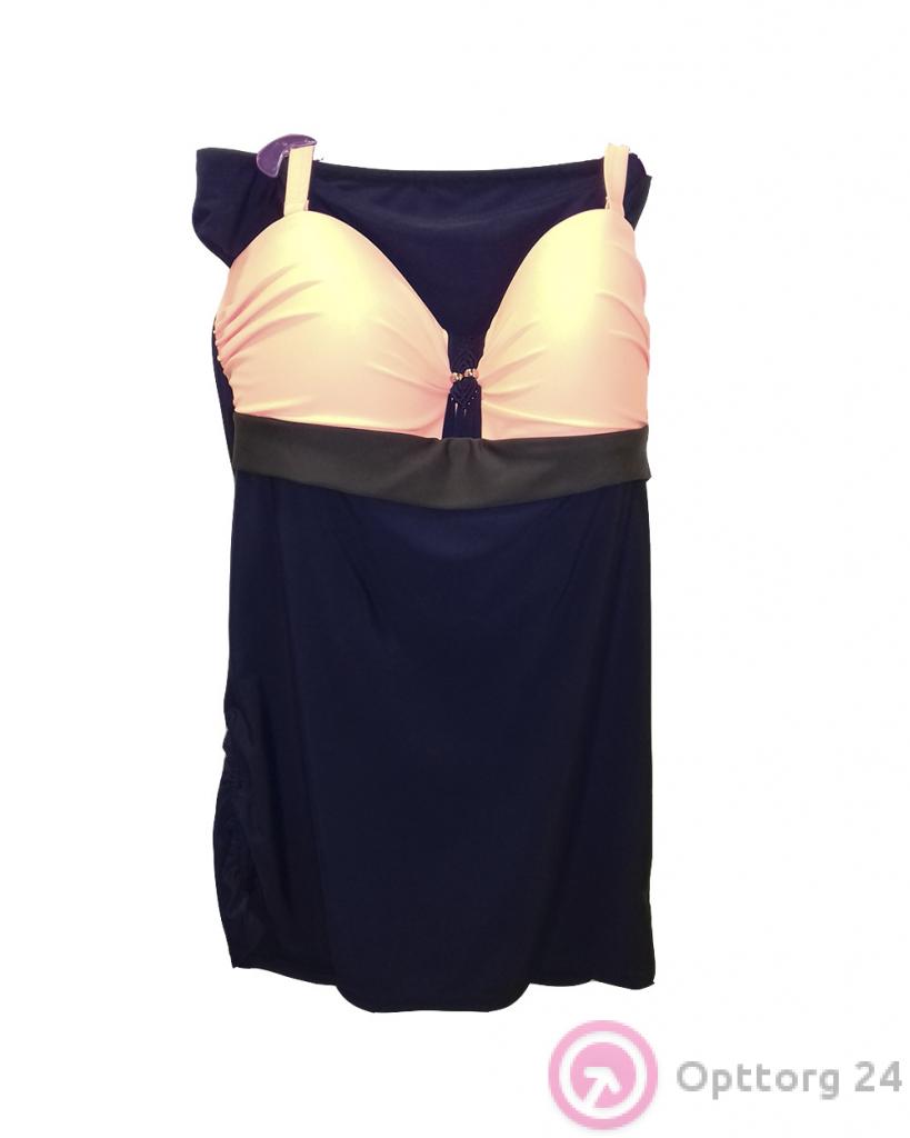 Купальник-майка синего цвета с оранжевым лифом оптом