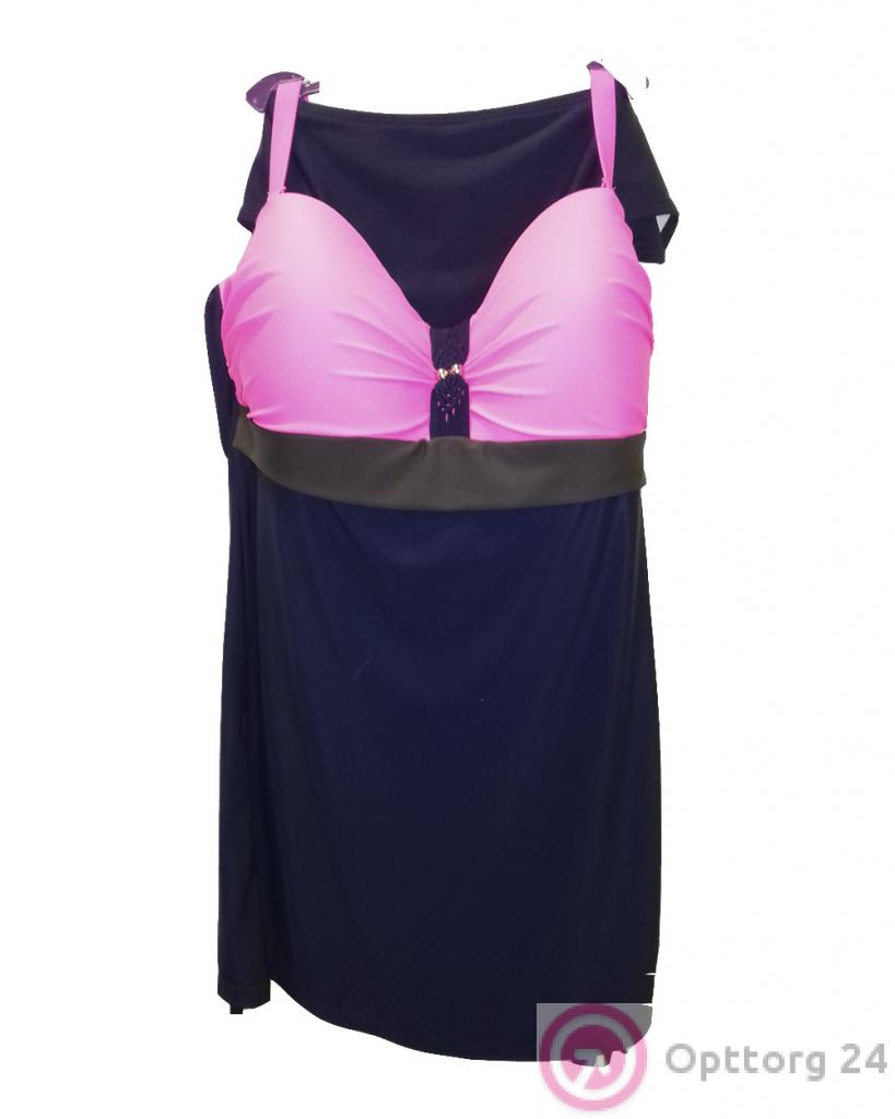 Оригинальный купальный набор, состоящий из удниненной майки на бретелях и плавок. Розовый лиф с вшитыми чашечками.