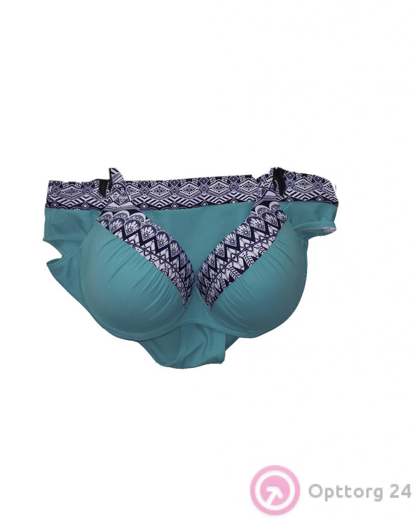 Купальник раздельный бирюзовый с белой декорацией оптом