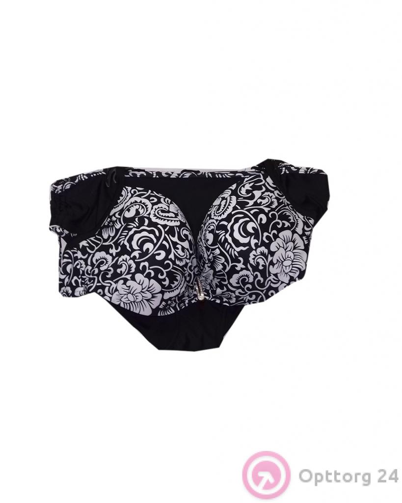 Купальник раздельный черно белый с подвеской оптом