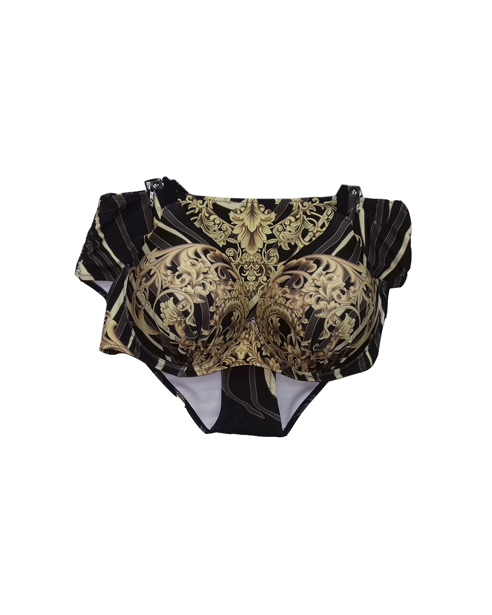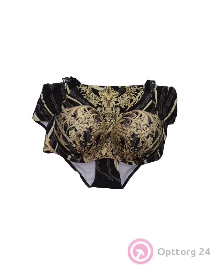 Купальник раздельный черный с коричневым принтом оптом
