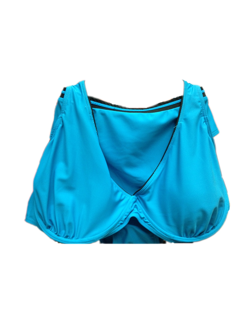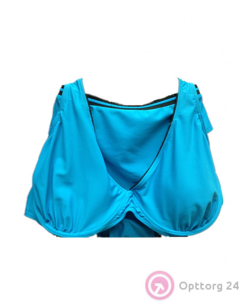 Яркий раздельный купальник голубого цвета. Отличный выбор для пляжного сезона. Удобный глубокий бюстгалтер на косточках хорошо поддерживает большую грудь. Качественная ткань, модная расцветка. Трусики с высокой линией посадки, выполнены в таком же стиле, что и бюстгалтер.
